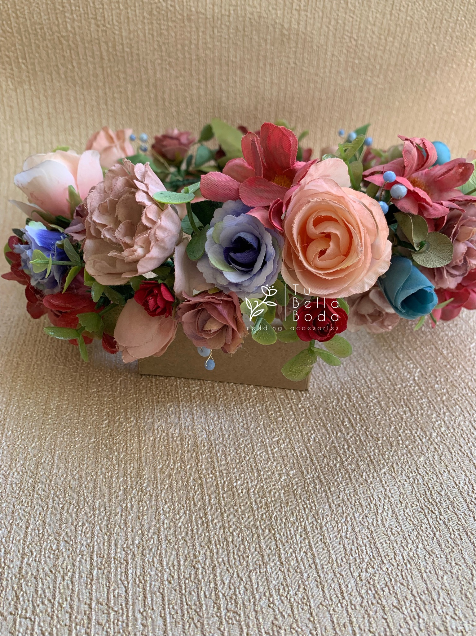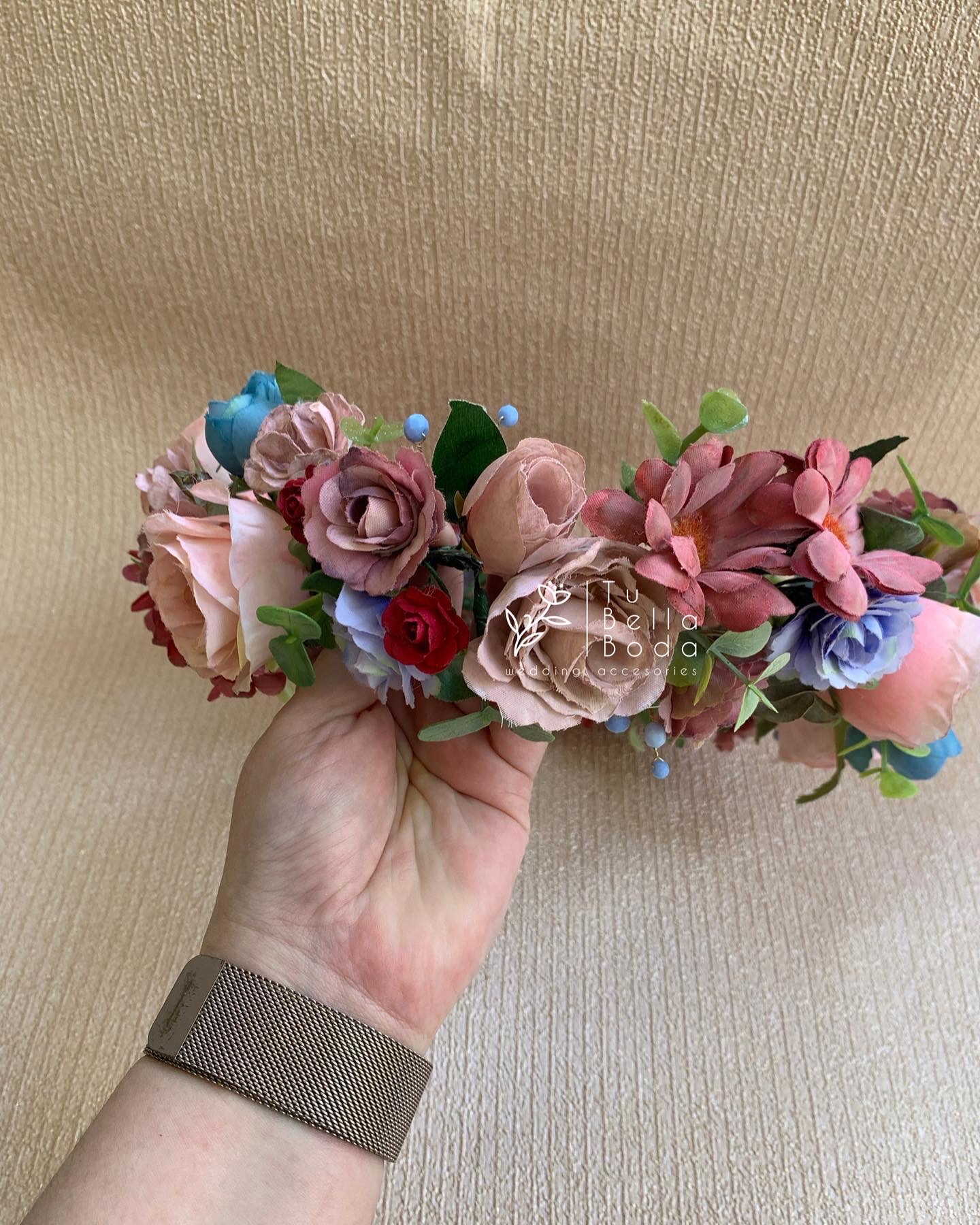 Calistta es una corona floral vibrante y artesanal con flores multicolor, ideal para novias o invitadas que buscan un look lleno de vida, romanticismo y personalidad. Hecha a mano y personalizable.