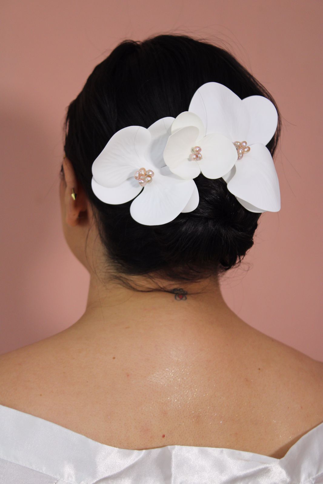 Te presentamos el Set de Horquillas Sara, una colección elegante y sofisticada, diseñada para añadir un toque de delicadeza y encanto a cualquier peinado nupcial. Este set incluye tres horquillas adornadas con orquídeas de látex, cada una elaborada con precisión y detalle para capturar la belleza natural de las flores. En el centro de cada orquídea, se encuentran perlas de río que aportan un toque de lujo y refinamiento, reflejando la luz de manera sutil y elegante.
